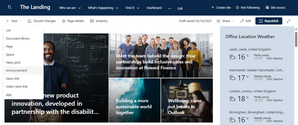 Viva Connections is an employee experience app that brings together news, conversations, and resources from across Microsoft 365 into a single, personalised destination. With the new Announcements feature in Viva Connections, you can now create and share time-sensitive messages with your employees directly from their SharePoint home site or the Viva Connections app in Teams desktop.